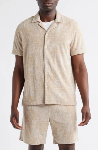Maverick Bandana Print Textured Knit Camp Shirt In Neutral