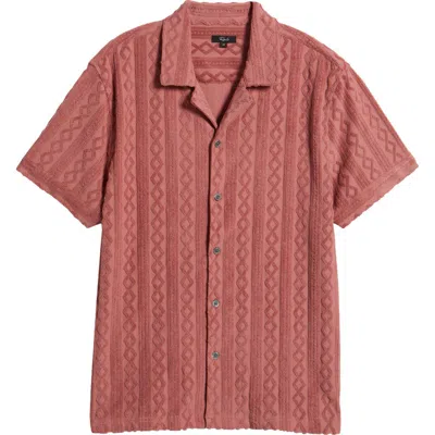 Maverick Textured Knit Camp Shirt In Faded Red