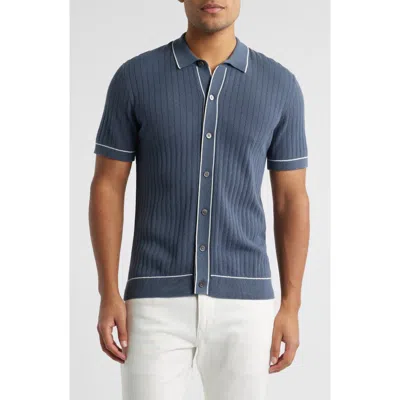 Vernon Knit Short Sleeve Button-up Shirt In Faded Navy