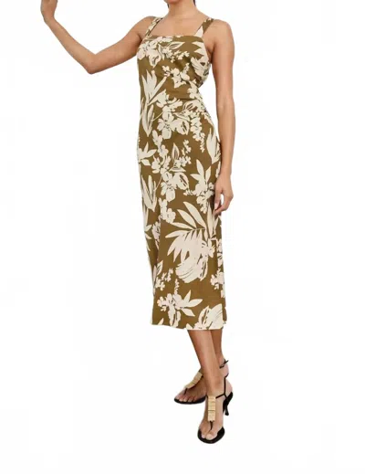 Lorenza Silky Sleeveless V-neck Midi Dress In Brown