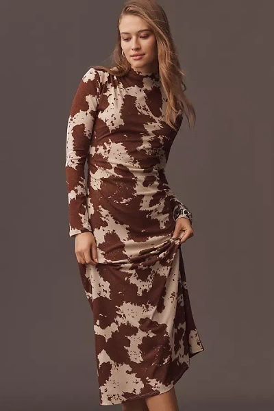 Margaret Long-sleeve Mesh Midi Dress In Brown