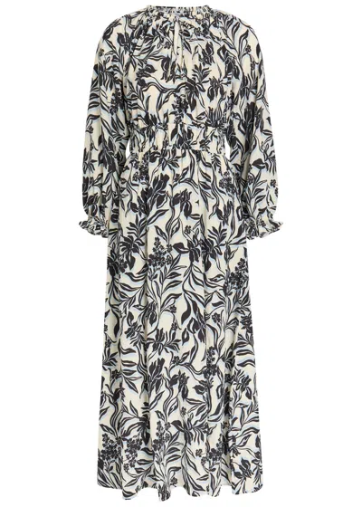 Matia Floral-print Woven Midi Dress In Black