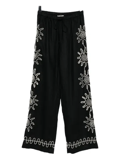 X Lspace Emmie Embroidered Linen Trousers In Black