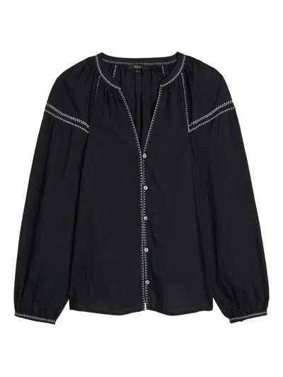 Aloise Embroidered Trim Silk Button-up Shirt In White