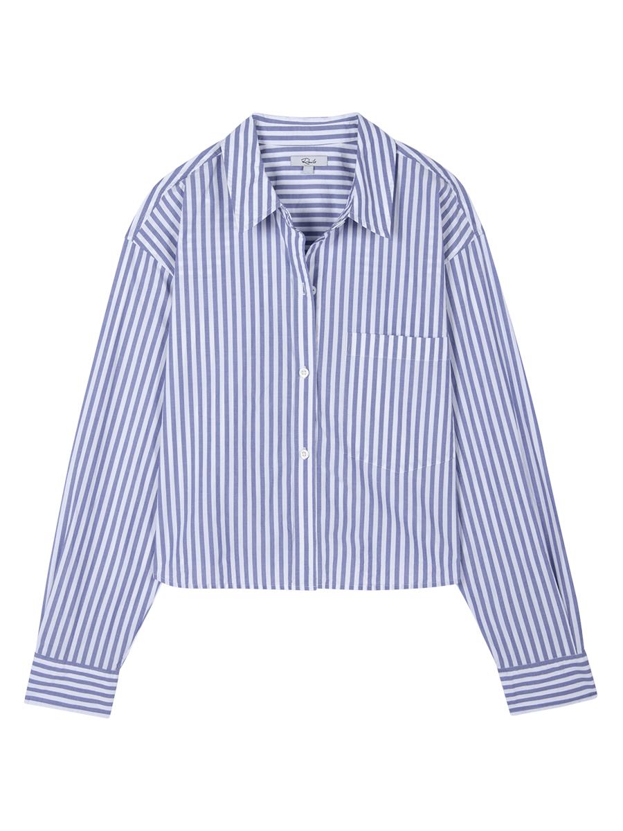 Ramy Striped Cropped Button-front Shirt In Mariner White Stripe