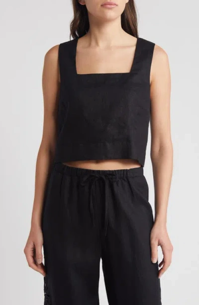 Akira Linen Crop Tank Top In Black