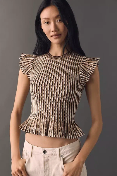 Bryn Ribbed Peplum Tank Top In Brown