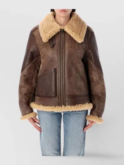 Saundra Leather-trimmed Padded Shell Jacket In Brown
