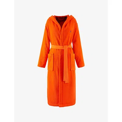 Sailing Polo Player Logo-embroidered Hooded Cotton Bathrobe In Orange
