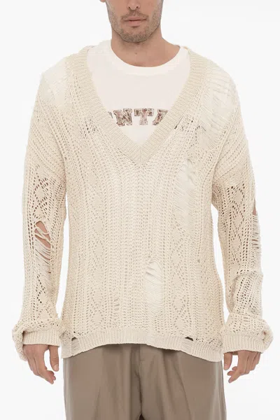 Vintage Effect Cashmere Blend Crew-neck Sweater In Yellow