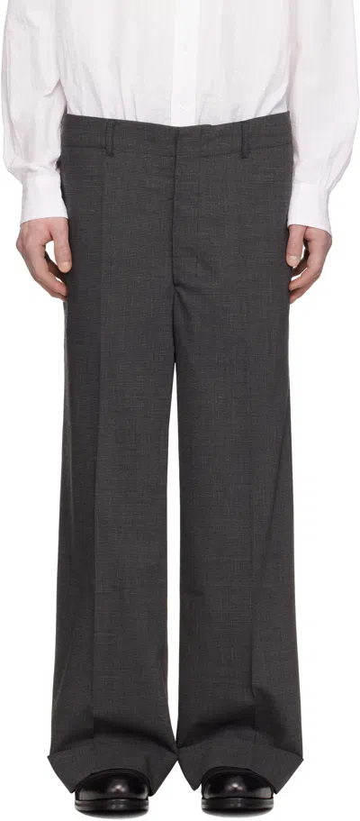Gray Houndstooth Wool Blend Large Suit Trousers In Dark Grey 1