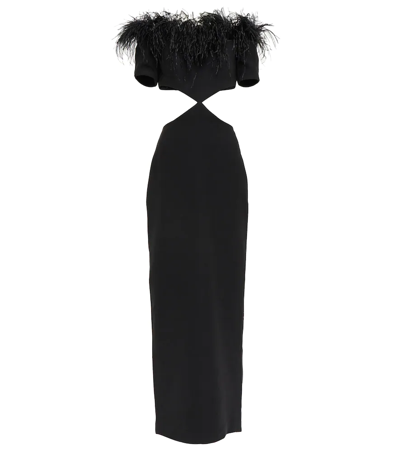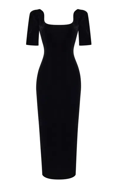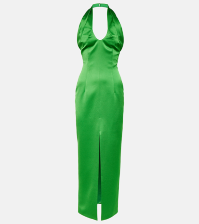Bow-detailed Chiffon & Velvet Maxi Dress In Yellow