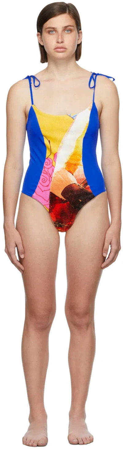Ssense Exclusive Blue & Orange Ophie One-piece Swimsuit In Color B Blu