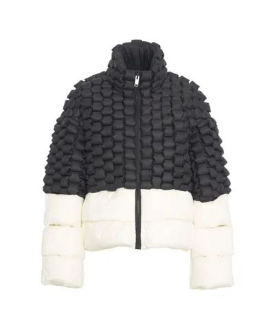 Black And White Down Jacket With 3d Quilted Design