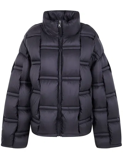 Quilted Goose Down Coat With Textured Detailing In Black