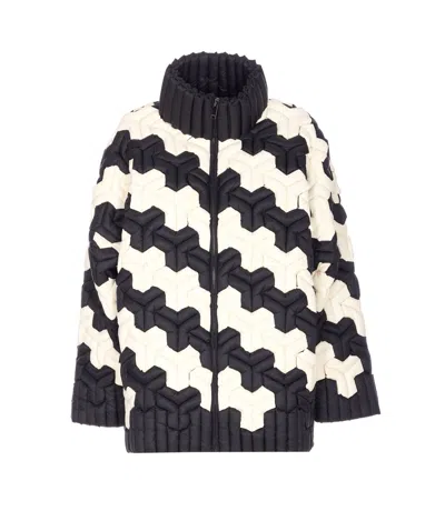 Black And White Down Jacket With 3d Quilted Design