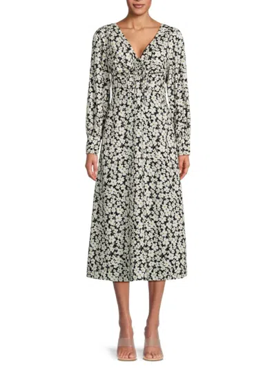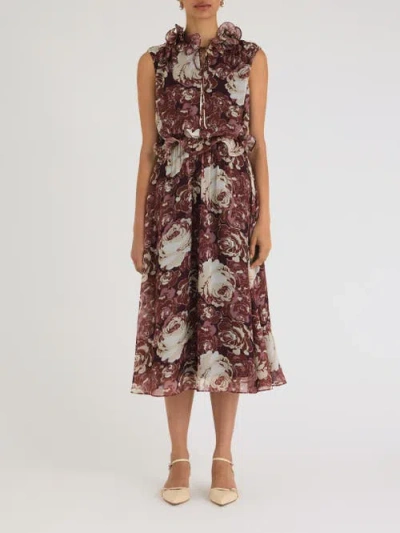 Floral All Over On Viscose Chiffon Blouson Sleeve Midi Dress In Multi