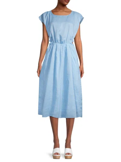 Women's Ramie Cut Out Midi Dress In Azul Blue