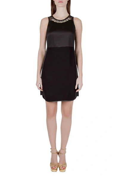 Pre-owned Black Neoprene And Mesh Embellished Neckline Dress S