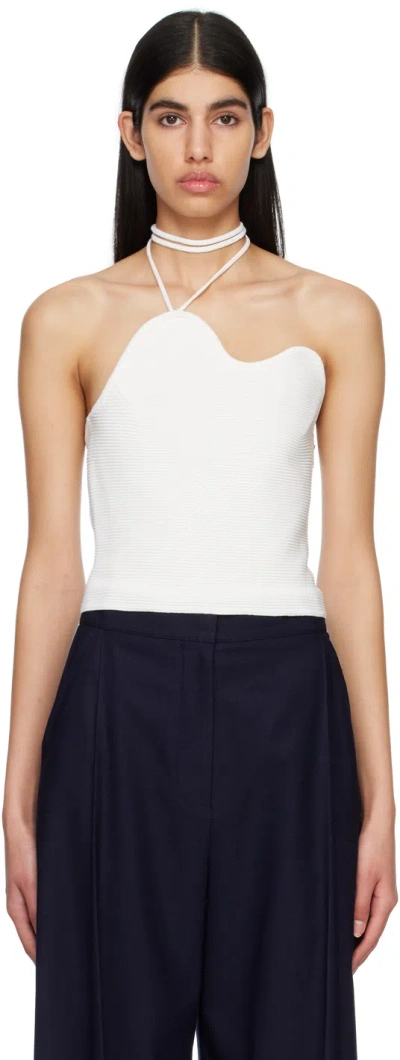 Curved Knit Halter Top In Off White