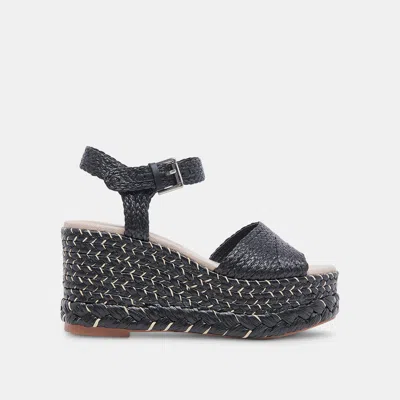 Tiago Wedges Black Raffia - Re:vita