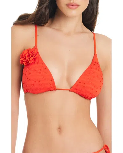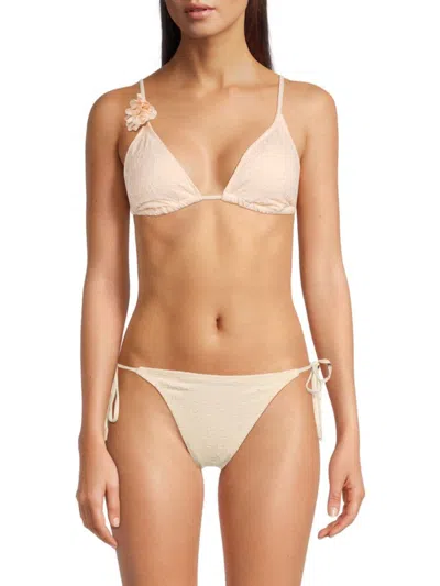Women's Flower Appliqué Triangle Bikini Top In Pink