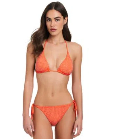 Womens Rhinestone Trim Classic Triangle Bikini Top Side Tie Hipster Bikini Bottoms In Orange