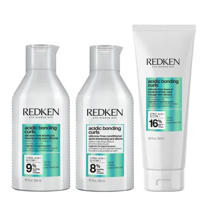 Acidic Bonding Curls Shampoo 300ml, Conditioner 300ml, & Leave-in 250ml Bundle For Damaged Curly & C In White