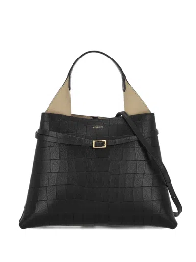 Medium Ann Leather Tote Bag In 黑色