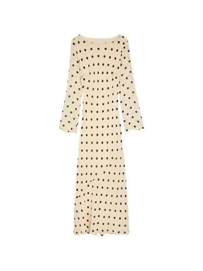 Esra Polka Dot Long Sleeve Maxi Dress In Neutral