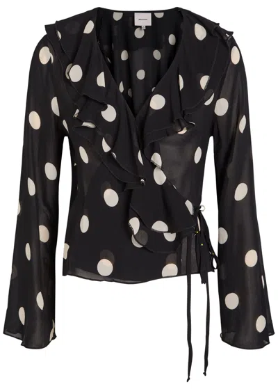 Kilah Polka Dot Silk-georgette Wrap Blouse In Black