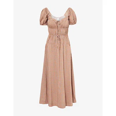 Womens Genevieve Check-print Woven Top Beige And Black Check In Gray