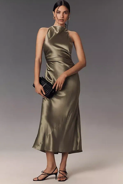 Poppies Cutout Silk-satin Midi Dress In Neutrals