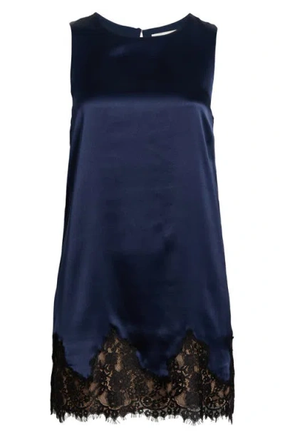 Womens Navy Jessalyn Lace-hem Silk Mini Dress Xl In Blue