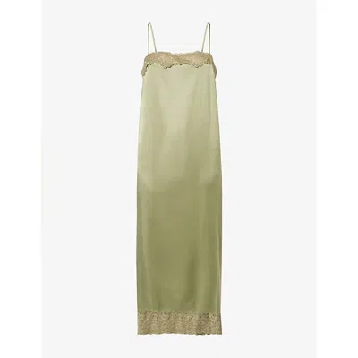 Womens Artichoke Mackenzie Lace-trim Silk Midi Dress In Green