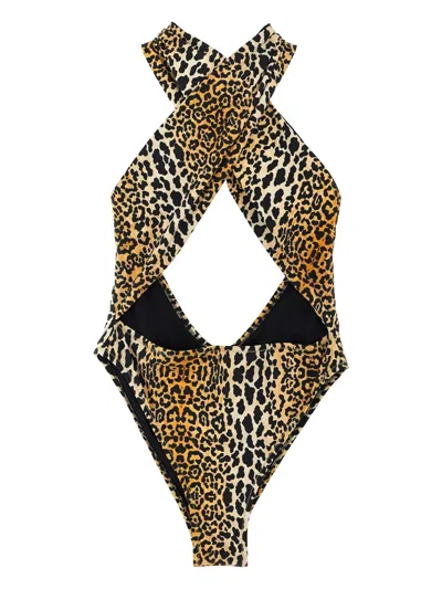 Funky Rainbow-print Open-back Swimsuit In Yellow