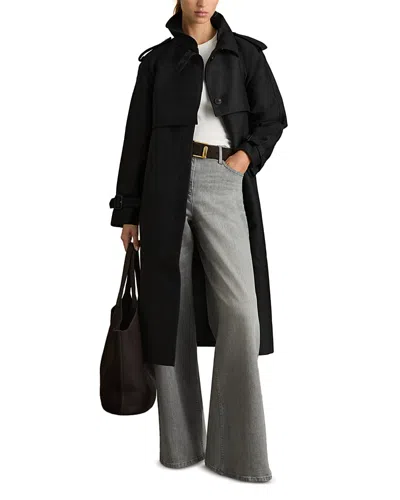 Black Gabardine Trench Coat With Cotton