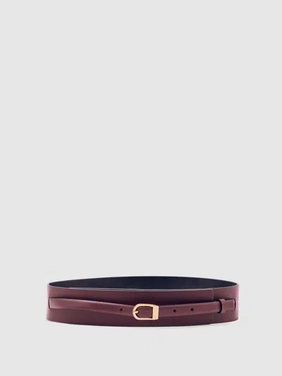 Womens Burgundy Iyla Half-keeper Leather Belt Xs In Brown