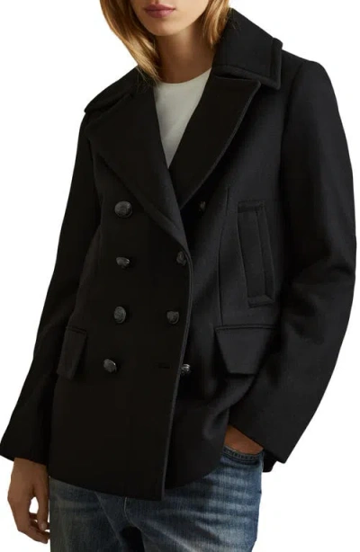 Black Wool Blend Double Breasted Pea Coat