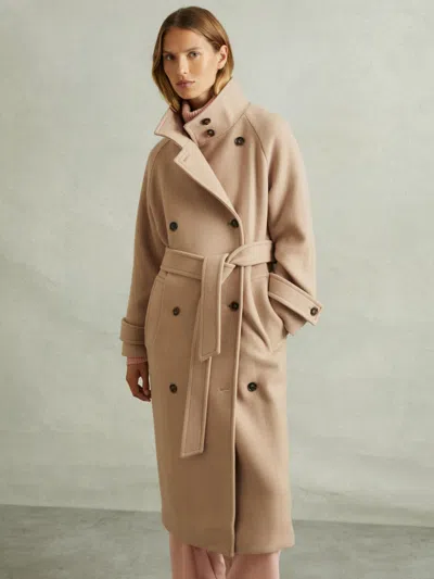 Womens Neutral Rene Double-breasted Wool-blend Coat