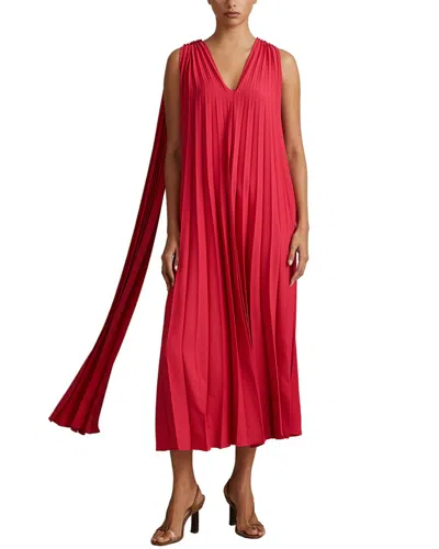 Coral Pleated Cape Sleeve Midi Dress In Red