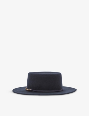 Womens Lacey Chain-embellished Felt Fedora Navy In Blue