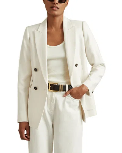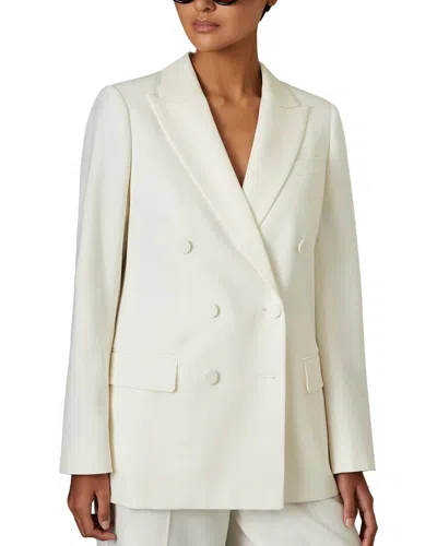 Womens Tally Double-breasted Tailored Wool-blend Blazer White