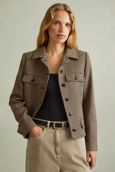 Vida Houndstooth Double Breasted Wool Blazer In Brown