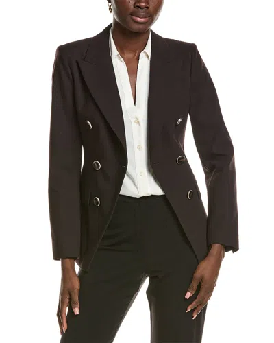Womens Black Tally Double-breasted Tailored Wool-blend Blazer