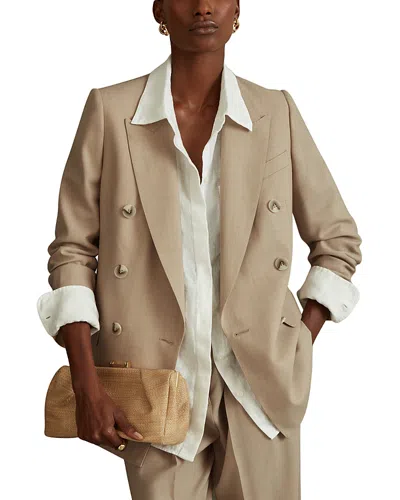 Neutral Sadie Wool Double Breasted Suit Blazer
