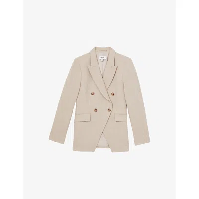 Womens Neutral Devon Peak-lapel Double-breasted Linen-blend Blazer
