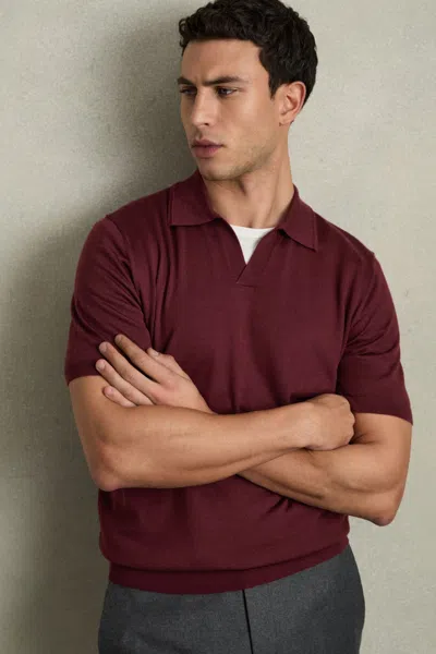 Mens Brick Red Duchie Open-neck Wool Polo Shirt In Claret Red