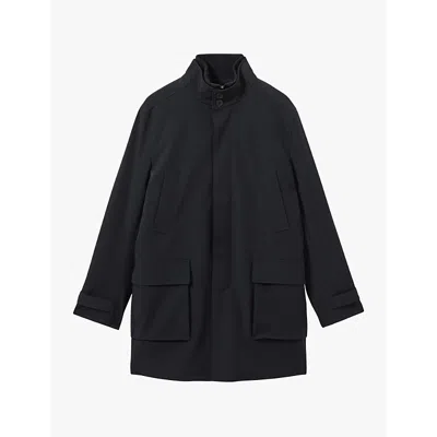 Mens Navy Player Funnel-neck Mid-length Hybrid Coat