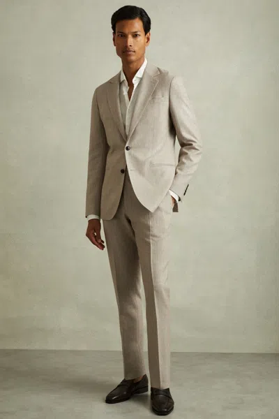 Kin Linen Slim Fit Suit Pants In Stone